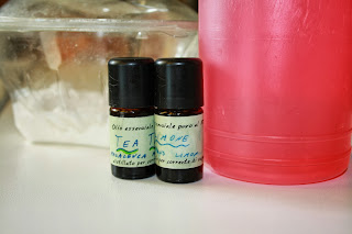 Aggiungere circa 50ml di alcool e mischiate bene, infine mettere 4 gocce di O.E. tea tree e 4 di limone. Se non avete l'O.E. si limone potete usare il succo di mezzo limone.