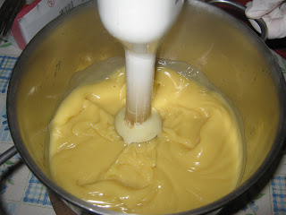 Ora mescolare con il frullatore ad immersione finch'é non diventa cremoso.