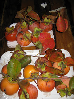 A few days ago I had placed a few persimmons on my terrace to mature and as they were ready I decided to make jam with them. One can find many recipies online but I invented a new version as I had some persimmon sauce leftover. I took the pulp off and placed it all in a pan with some lemon juice, after a few minutes (you will feel it stick) I added some sugar not much as the fruit is very sweet and a few drops of vanilla. Some might prefer cinamon or rhum, choose according to your taste! After a few minutes the sugar will melt and you will just need to do the plate test to know when to turn it off. Just put in previously washed and drained pots, close them when the jam will be cool and sterilize in boiling water for 10 minutes.
