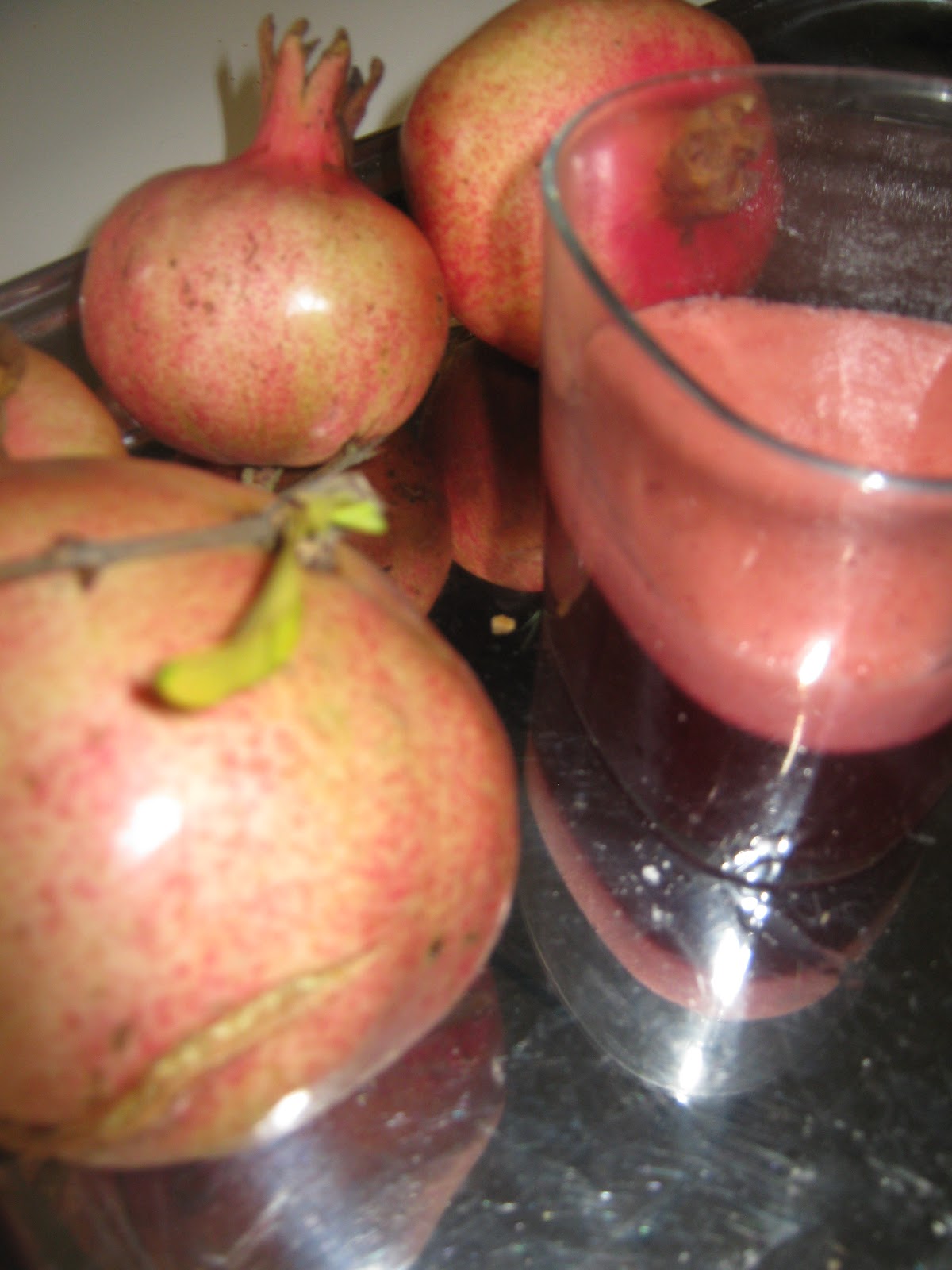 The first recipe is a simple juice made with a pomegranate and apples, I didn't add any other fruit and I must say that the result was excellent, sweet and fresh! It will give you great energy!!! (1 full glass)