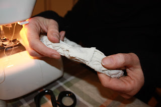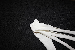 Sul punto della cucitura prendete un pezzo piccolo di maglietta e copritela facendo un giro e cucendolo sopra le due o più trecce.