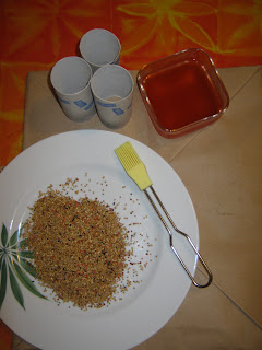 Con il pennello dipingete il rotolo o la pigna con la marmellata o il miele.